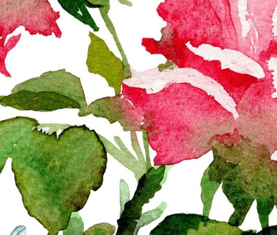 - Глухое изображение, например цветы или абстракция уменьшают комнату за счет объемного рисунка.