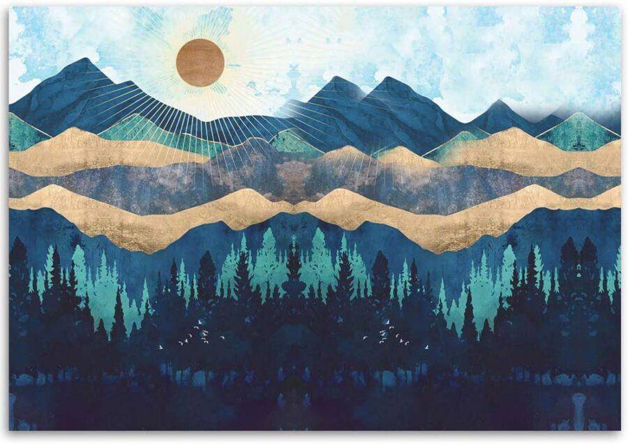 - Панорамная фотография или фотопанно с перспективой, например природа с уходящей вдаль тропинкой, наоборот визуально вытягивают пространство, и совсем компактная комната будет смотреться гораздо больше.