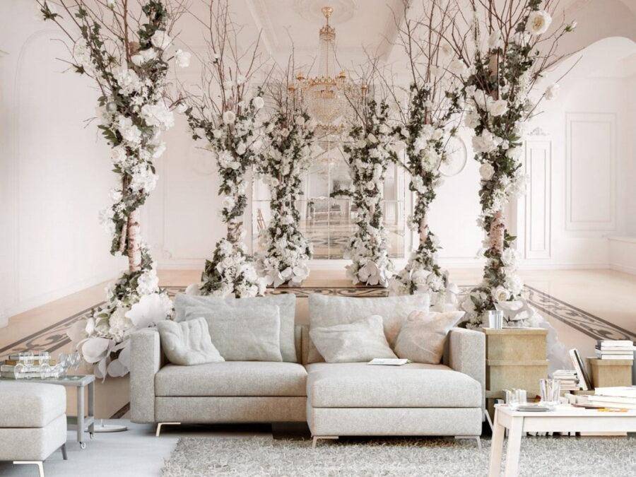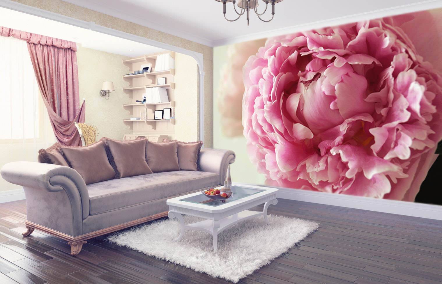 Отделка должна создавать настроение в комнате и гармонично сочетаться с дизайном пространства. Разнообразие сюжетов позволит организовать нужную атмосферу в зале. В интерьере гостиной часто используют цветочные мотивы. Эффектно смотрятся как огромные детализированные бутоны, так и композиции.