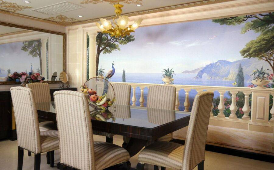 фотообои, изображающие старинные картины или фрески, будут более уместны в гостиной, отделанной под французский или итальянский стиль. Также эти обои отлично впишутся в классические направления декора;