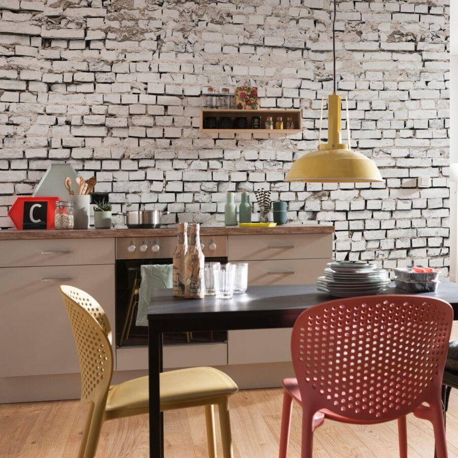 - Оформление кухни фотообоями не терпит соседства с лишними предметами мебели – по возможности, отделайте ими стену, которая не будет заставляться или же поклейте свое панно, начиная с уровня стола или выше.