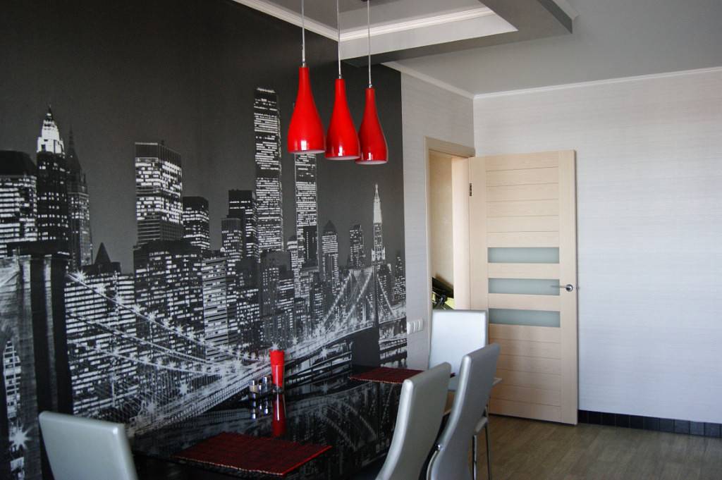Это поможет фотообоям стать составляющей единого целого, достойным украшением обстановки. В композиции на стене должно быть как можно больше оттенков, имеющихся в остальных элементах интерьера. Можно использовать игру контрастов для придания выразительности, оригинальности. Но делать это нужно аккуратно, чтобы избежать диссонанса. На фото ремонтов кухонь с фотообоями есть много интересных проектов, которые можно использовать в оформлении своего гармоничного интерьера.