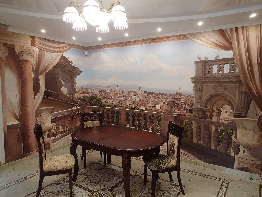 Эти изображения очень реалистично имитируют арки и открытые окна, двери и лестницы, особенно, если выполнены в 3Д технологии. Они востребованы в основном в интерьерах малогабаритных пространств, так как очень хорошо справляются с задачей их расширения.