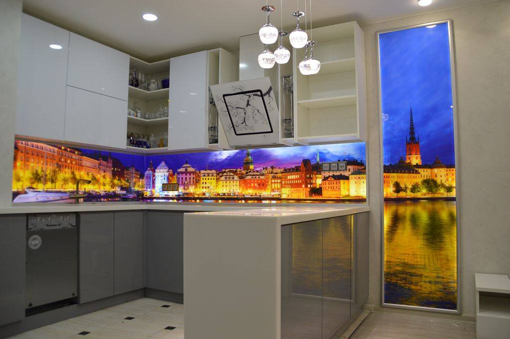 Кстати, выделить фотообоями можно и кухонный фартук, который мы привыкли закладывать плиткой.
