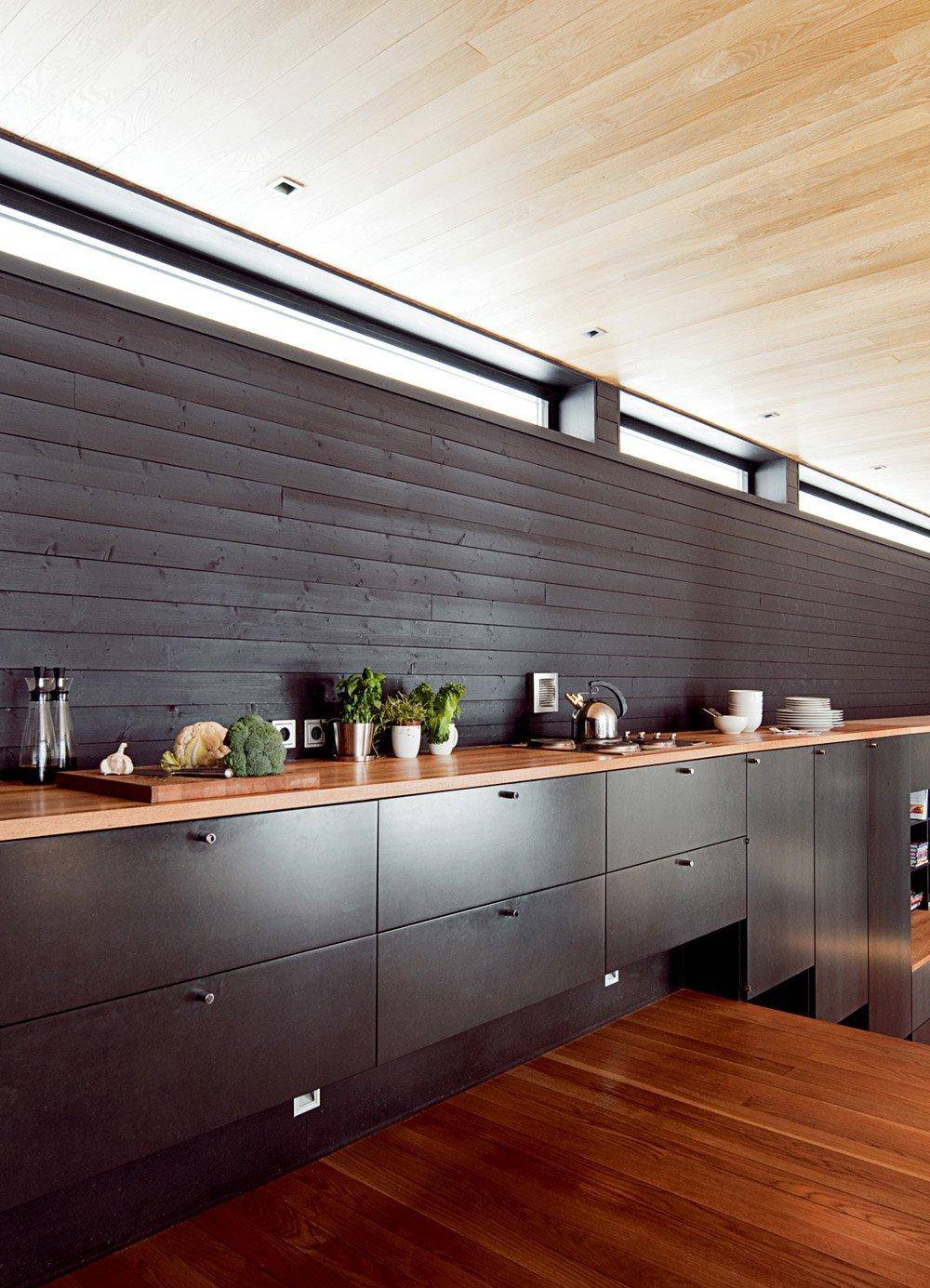 Современная узкая кухня в частном доме