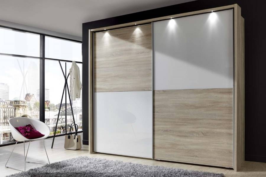 Менее распространены шкафы из сочетаний различных вставок. Однако, чтобы они хорошо смотрелись, требуется очень опытный дизайнер.