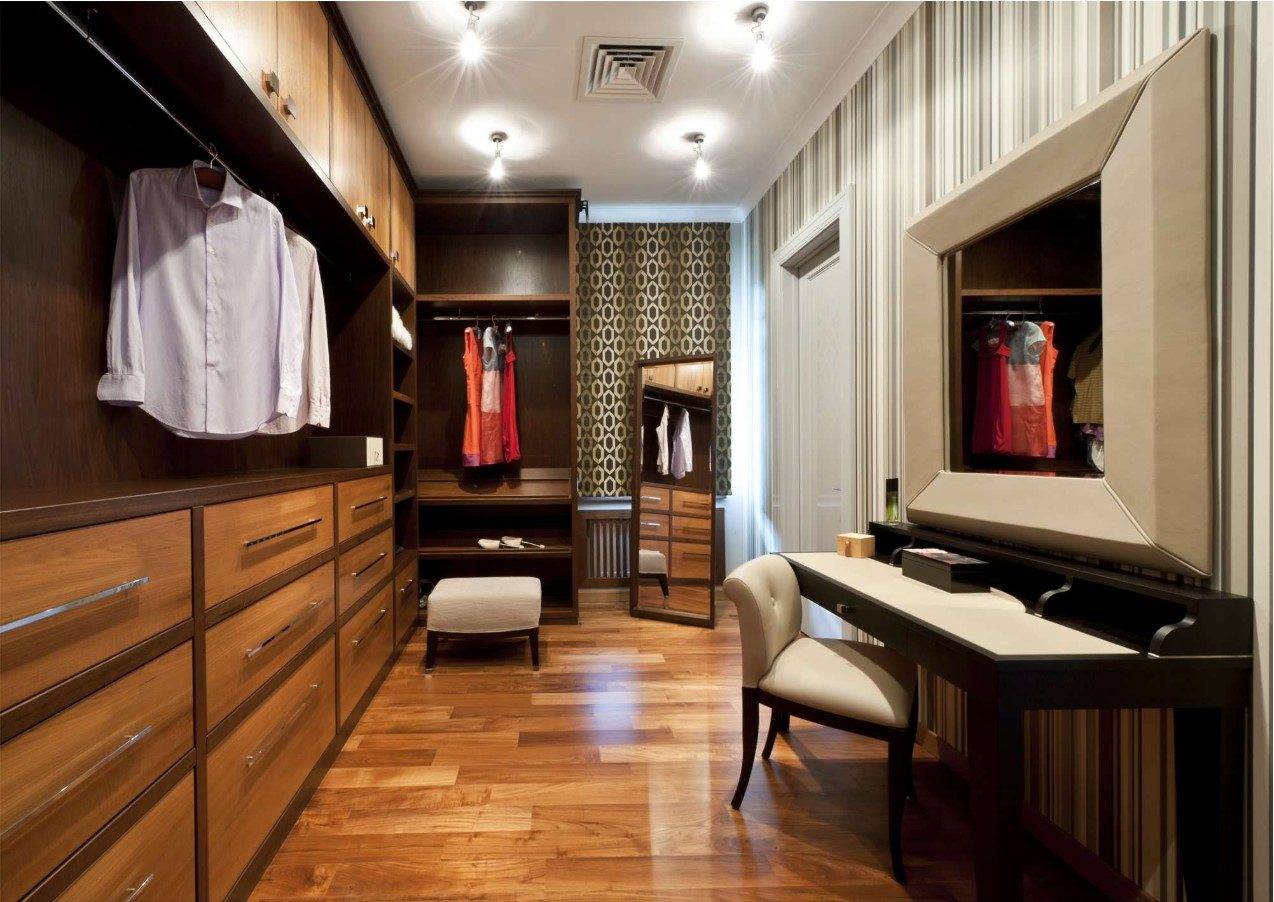 Дизайн гардеробной комнаты с туалетным столиком