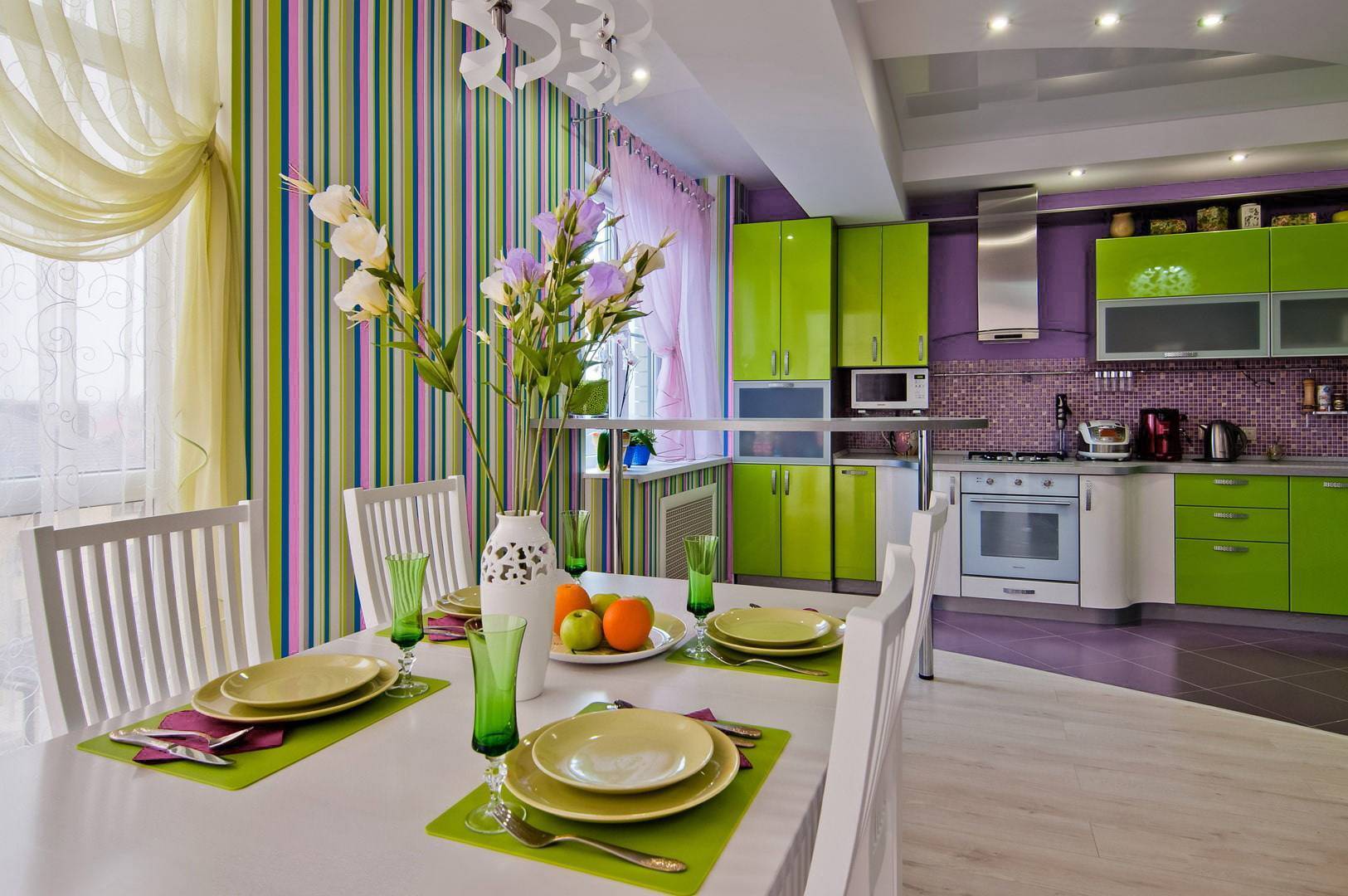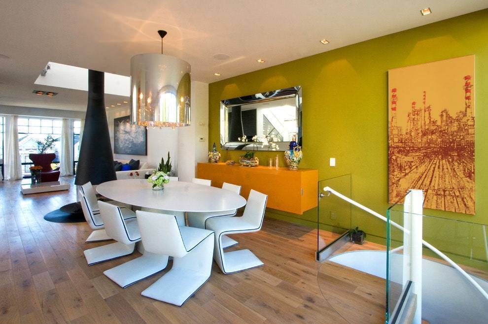 Если вы хотите создать яркий интерьер, благоприятный для приема пищи и отдыха, – выбирайте голубой, синий, зеленый и теплый желтый в качестве акцентных цветов.