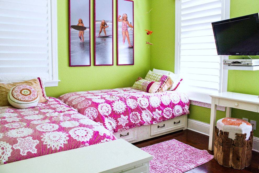На фото: салатовый безупречно сочетается с цветом фуксия, декоративные элементы добавили роскошь в дизайн.