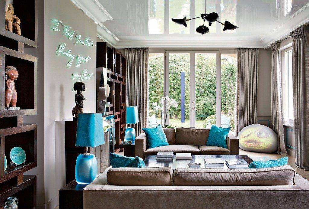 Монохромный дизайн голубой гостиной будет смотреться изысканно, но слишком строго, поэтому для свежести будут уместны дополнительные цветовые эффекты. Есть несколько цветов-компаньонов, которые помогут сформировать стильный запоминающийся дизайн.