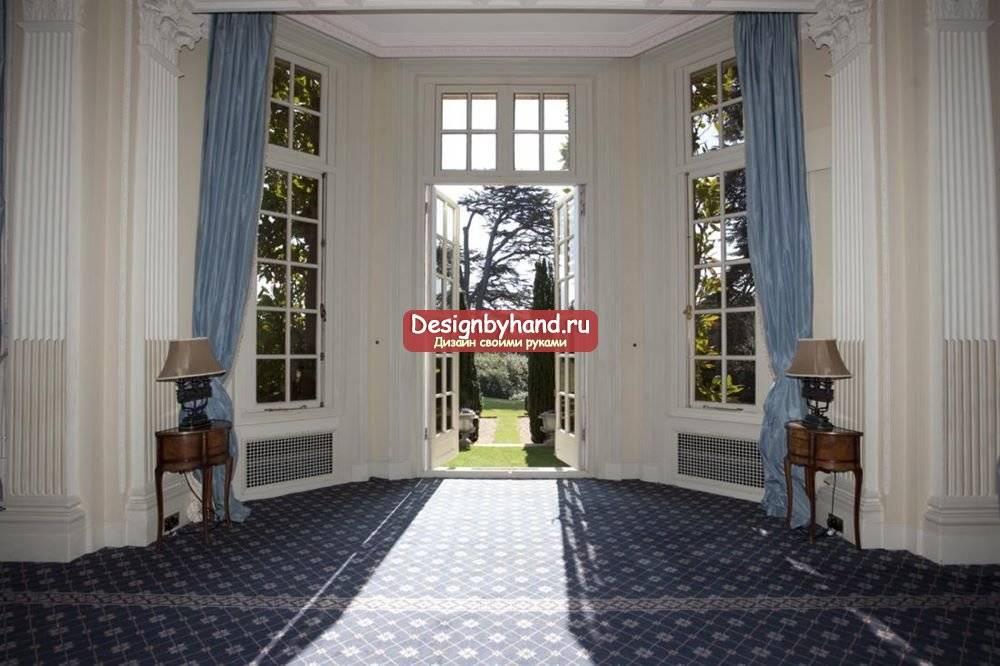 Полы закрываются качественными коврами. Раньше по периметру оставляли узкие полоски деревянного пола. В настоящее время ковром можно закрыть пол во всей комнате. В кухнях, холлах и ванных широко применяется керамика. Она может быть выложена в шахматном порядке белой и черной плиткой или в виде сложных узоров 4-5 разных цветов. Черно-белая плитка никогда не выходит из моды. От размеров и способов укладки кафеля зависит то, как будет выглядеть помещение. Диагональная укладка мелкой плитки визуально расширяет небольшую прихожую. Большое квадратное помещение предпочтительно выложить большими квадратами.