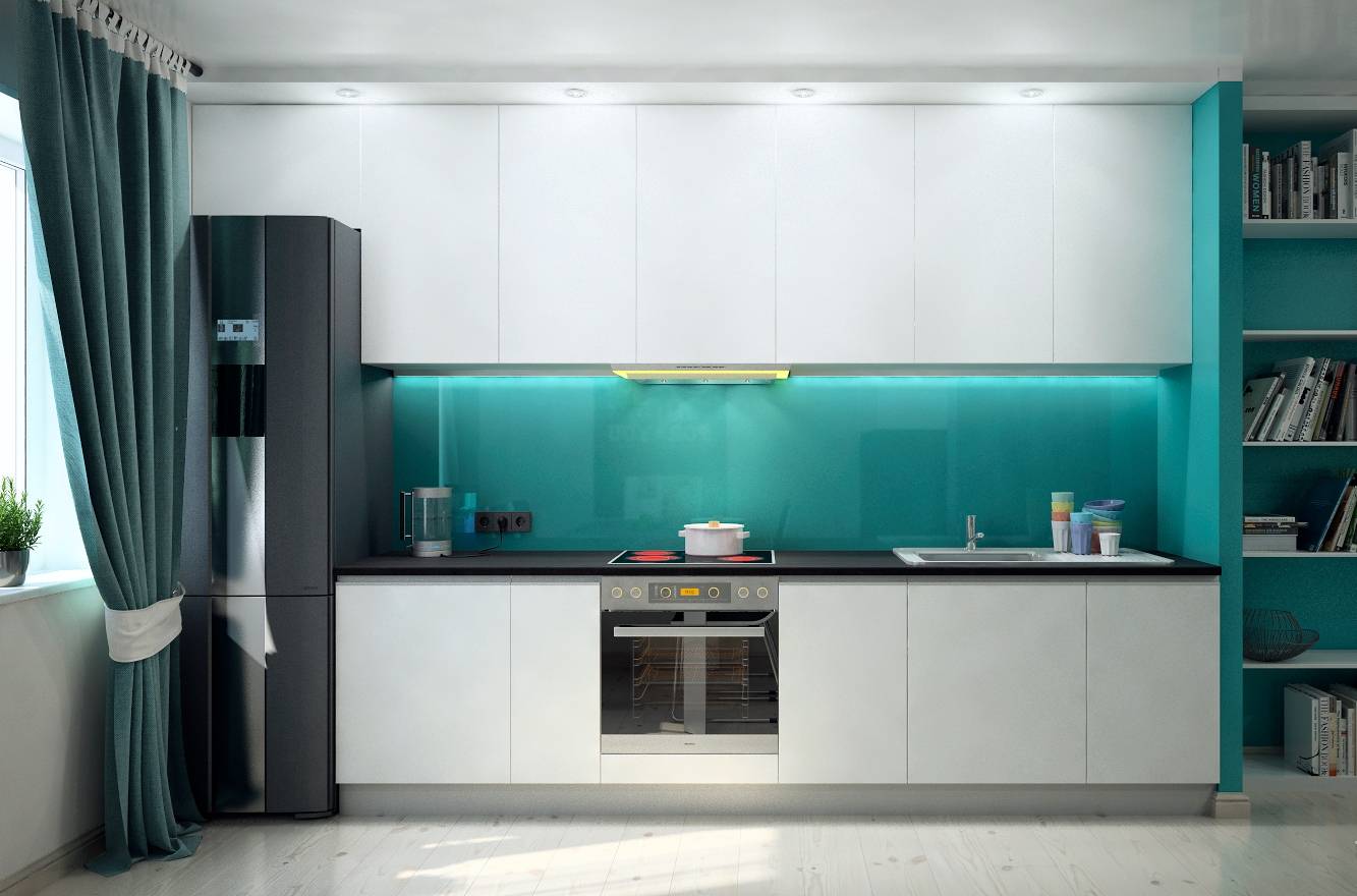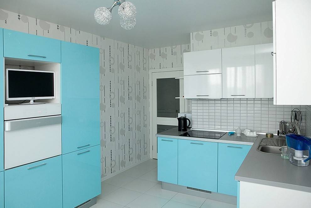Бирюзовые оттенки идеально вписываются в лаконичный интерьер кухни