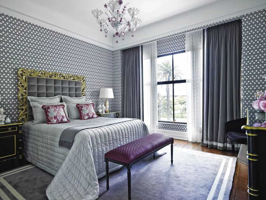 Отделка стен с дамасским рисунком нуждается в однотонном текстиле таких же или контрастных цветов для акцента, или частичного использования ткани с таким же дамасским рисунком для ламбрекенов. Если все помещение оклеено обоями с дамасским рисунком, то шторы, однозначно, нужно вешать монохромные в тон принту. Если такими обоями оклеена одна из стен, то шторы с таким же узором будут создавать дополнительный акцент. Ткани нужны благородные, под стать обоям.