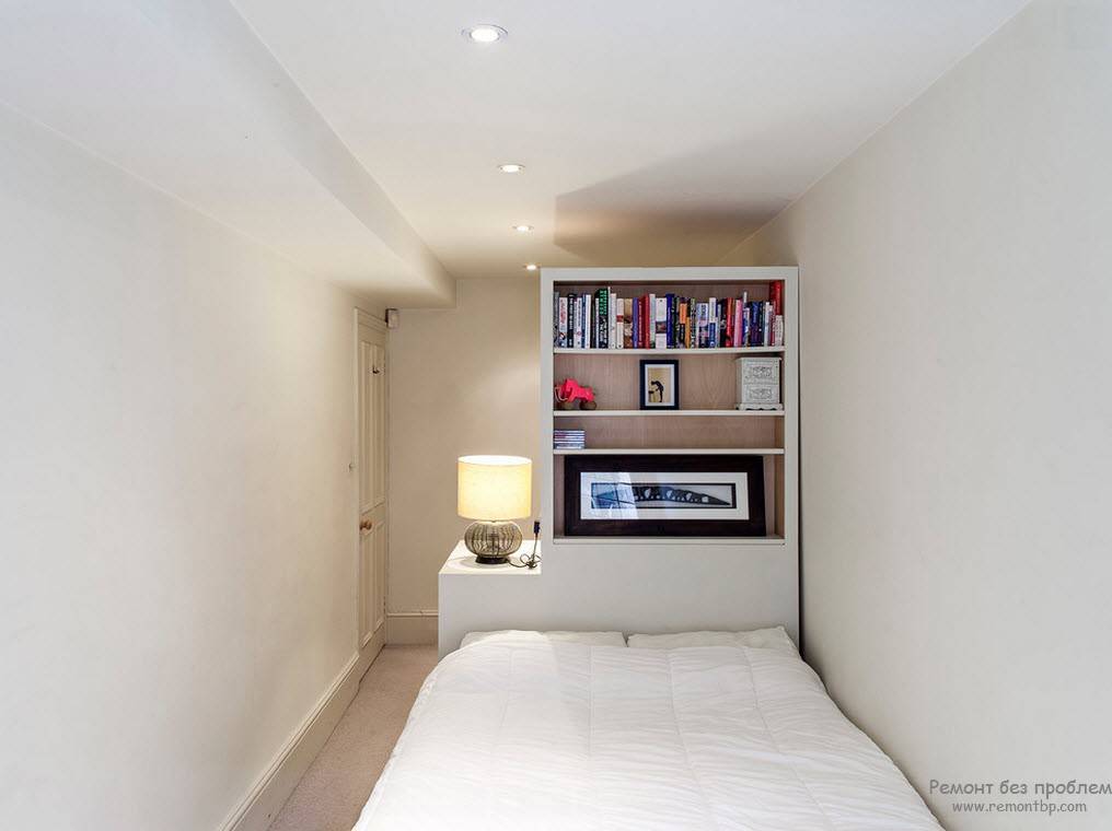 Если есть место, можно установить высокий и узкий шкаф, а также компактную и вместительную тумбочку. Телевизор рекомендуется разместить на стене.