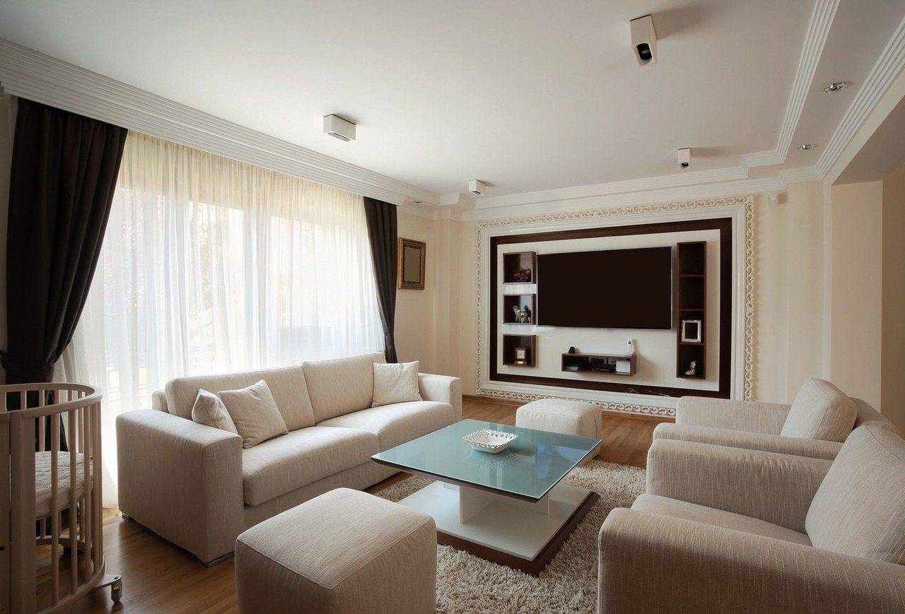 Современный потолок дает много возможностей в дизайне интерьера. Данная плоскость гостиной может быть эффективно выделена. Благодаря современным материалам и технологиям легко сделать декоративные подрезы, углубления, отверстия, узоры или разные уровни. Стильный дизайн интерьера создаст неповторимую атмосферу.