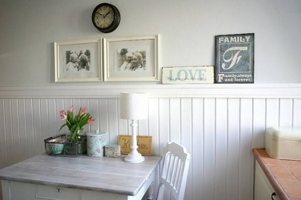 Несмотря на бледную и спокойную цветовую гамму, кухня в стиле прованс может выглядеть интересно и нескучно за счет материалов с выраженной фактурой и текстурой. Например, сделайте одну из стен акцентной, отделав светлой плиткой под кирпич.