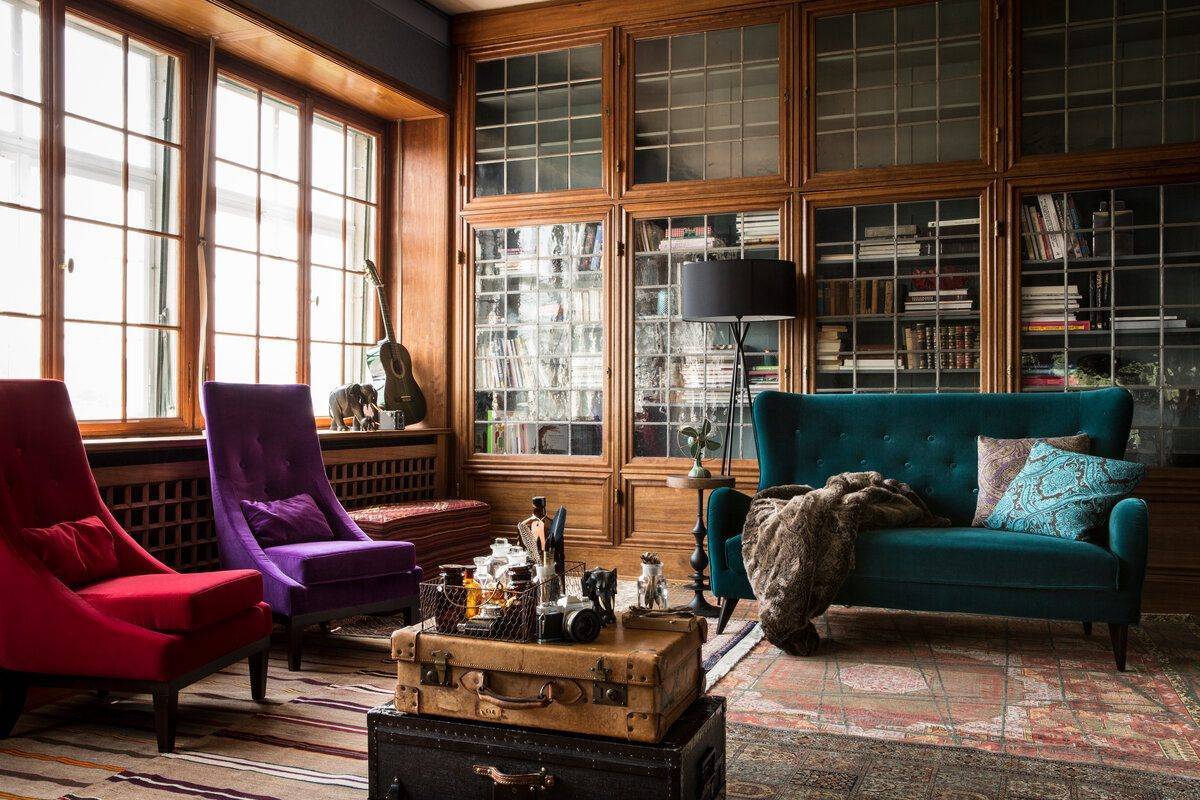 В него органично впишутся уютные кресла викторианской эпохи, лепнина классической формы, богато украшенные узорами ткани из Индии и ретро-мебель из 60-х годов прошлого века.