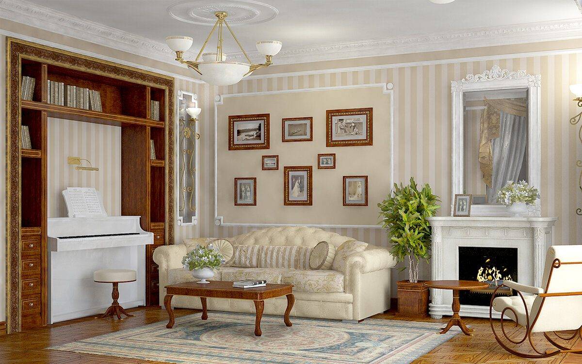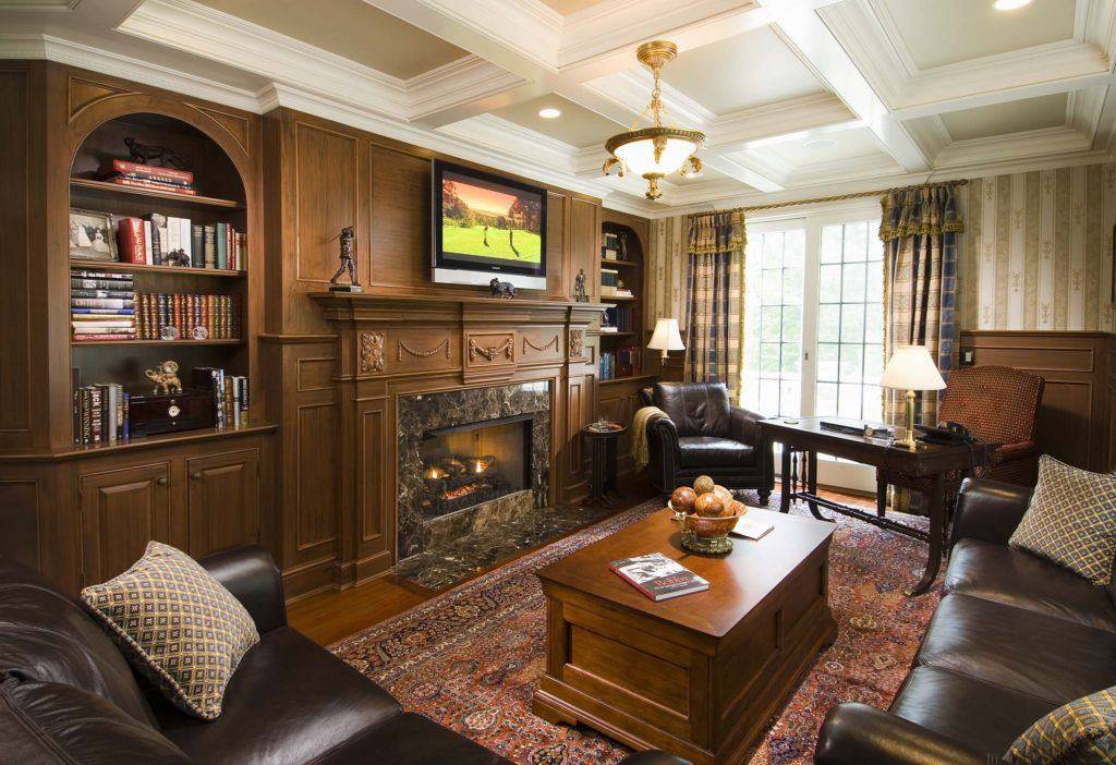 В гостиной в английском стиле должен быть диван, персидский ковер или индийский столик. В любом интерьере они приносят спокойствие и уютную атмосферу. Вы можете повесить длинные шторы на окнах. Деревянный пол работает отлично. Мягкая мебель может быть обшита. Дизайн приветствует сочетание с охотничьими мотивами.