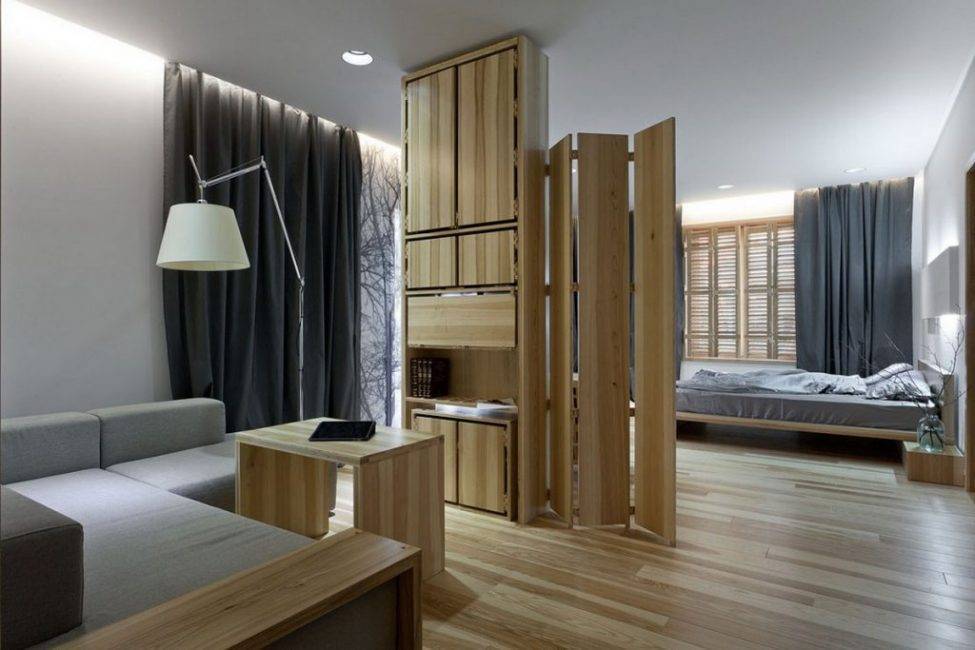 - С целью зонирования используют мобильные перегородки, ширмы, которые могут легко переноситься и складываться.