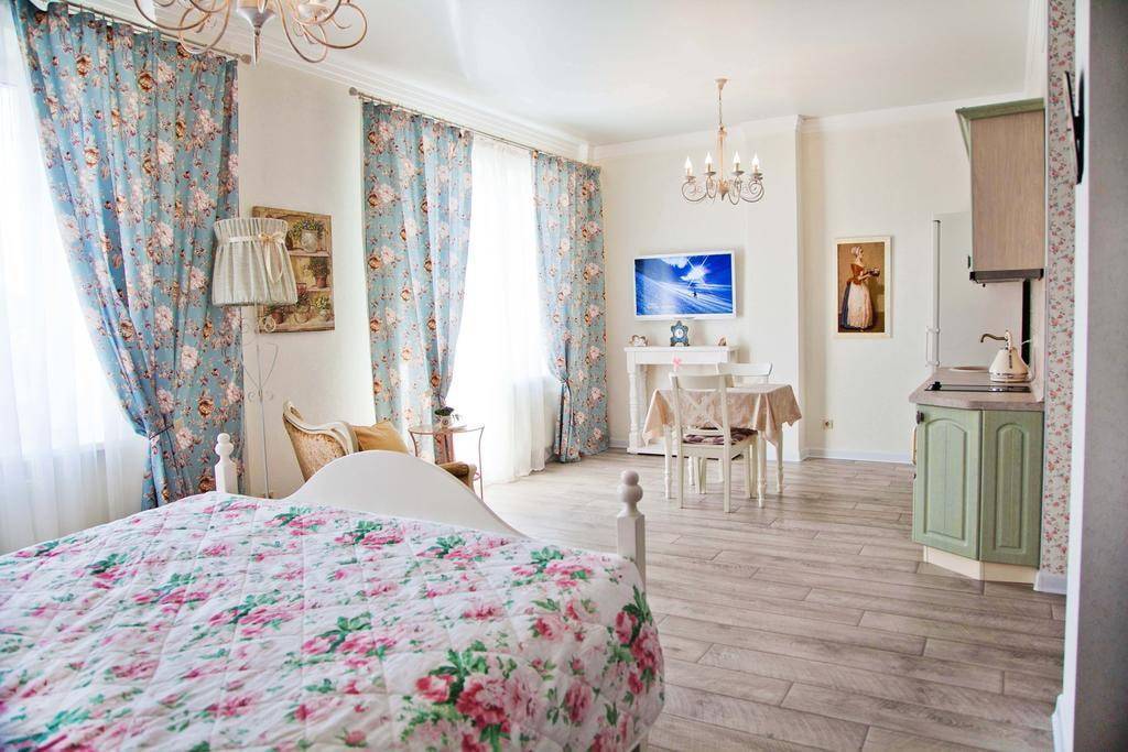 Любители природных материалов могут оформить студию в эко-стиле, добавив деревянных текстур (натуральная мебель, ламинат «под дерево»), а ценители французского уюта – обустроить квартиру в стиле прованс, с цветочными узорами и гарнитуром под старину.