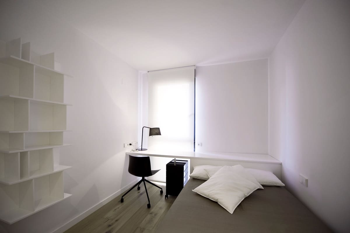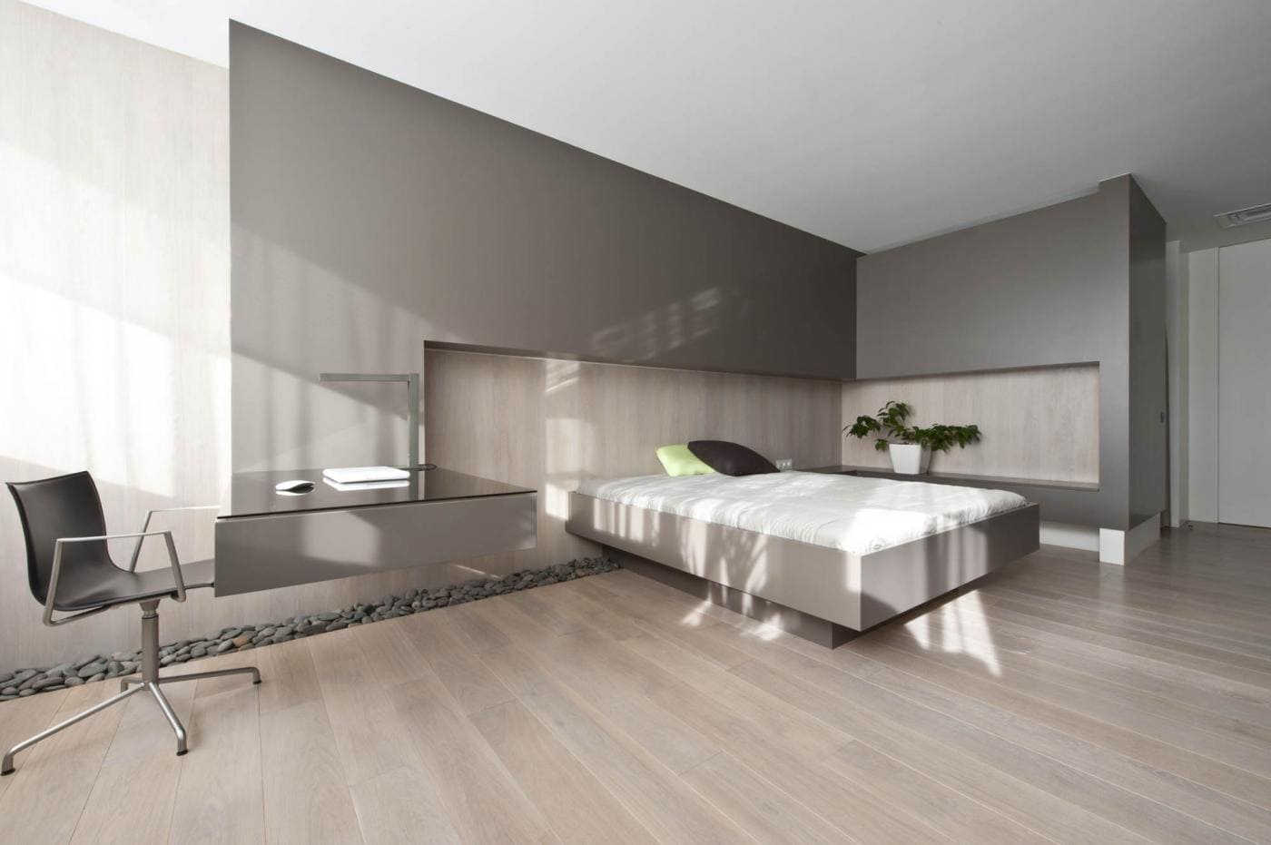 Лучшая находка для воплощения минималистских идей — консольная мебель, встроенная в ниши или прикреплённая к стене. Когда нет необходимости, например, в кровати, её просто можно поднять и закрепить у стены, это здорово экономит пространство. Нередко в таких кроватях встроены выдвижные ящики для хранения белья.