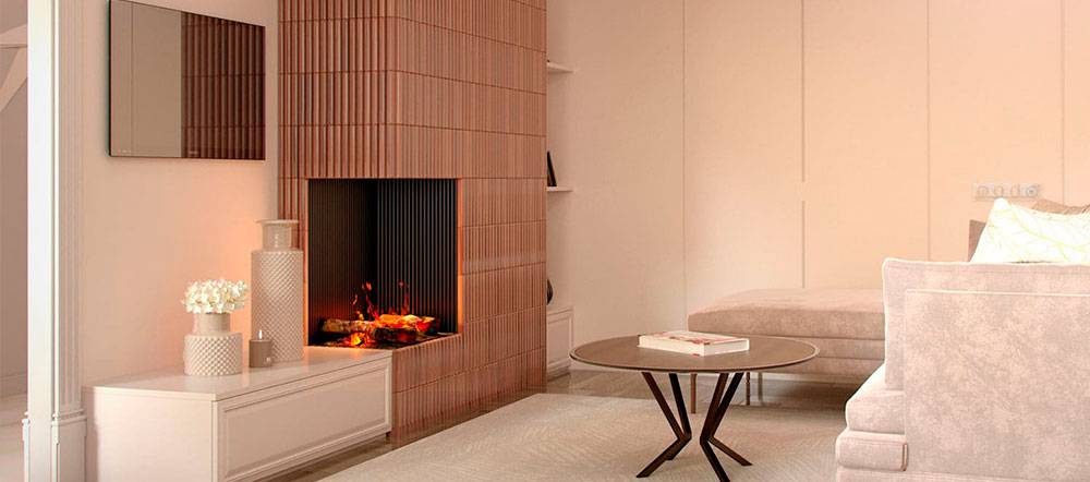 Камин можно установить в угол, подобрав для него подходящий по стилистике портал, или вмонтировать в стену – это более трудоемкий, но очень выигрышный вариант, при котором значительно экономится пространство.