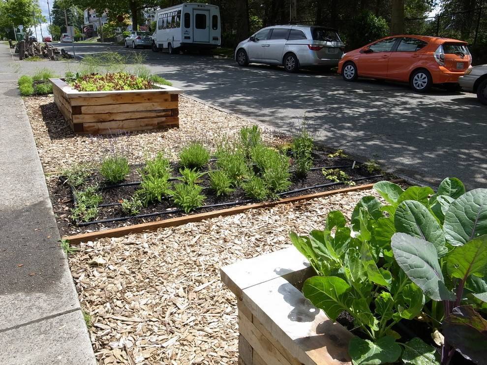 Грядки в деревянных коробахИсточник the-dots.com