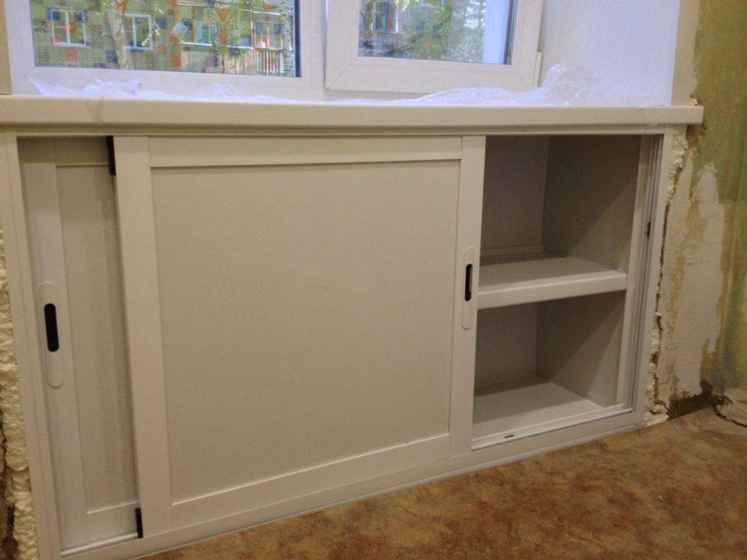 Наиболее проще и достаточно практично сделать из отделения под окном шкаф. Для его сооружения необходимо: