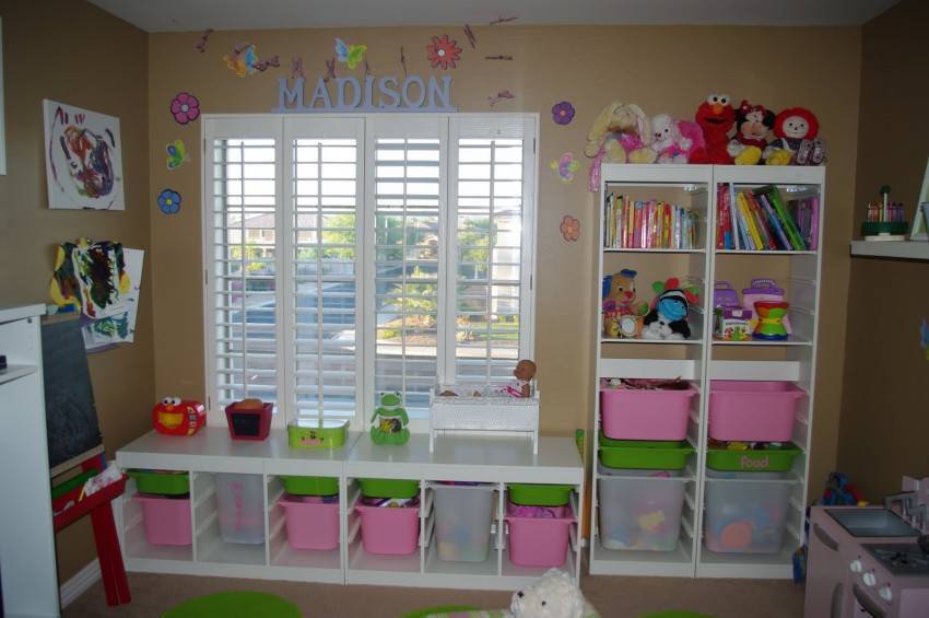 Залог порядка — определение своего места для каждой игрушки. Малышам поможет маркировка наклейками. Дети постарше, подростки могут сами организовать хранение своих вещей, выбрать удобные варианты организации.