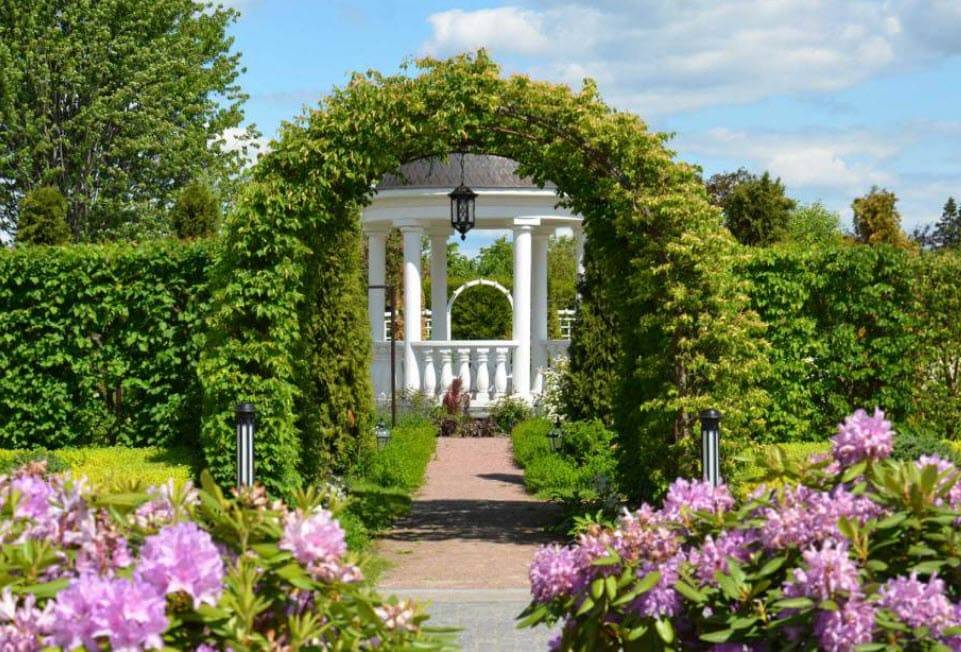 В таком случае огород отделяют от других объектов на участке с помощью невысокого ограждения или живой изгороди. Для оформления входа подойдет пергола, украшенная вьющимися растениями.