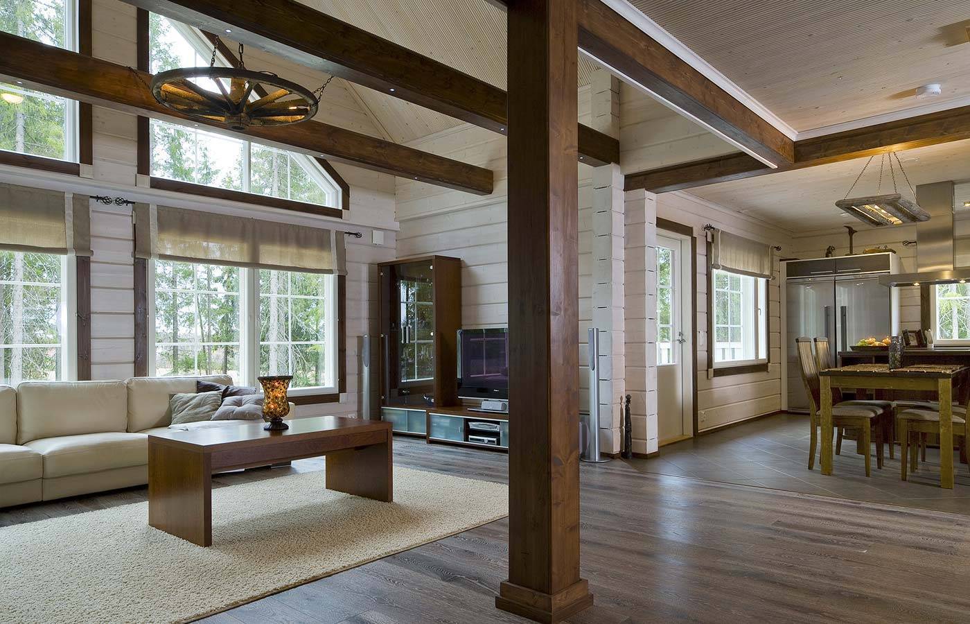 Если вы еще не определились, каким хотите видеть интерьер вашего деревянного дома, стоит посмотреть фотографии готовых интерьеров гостиных, кухонь и спален.
