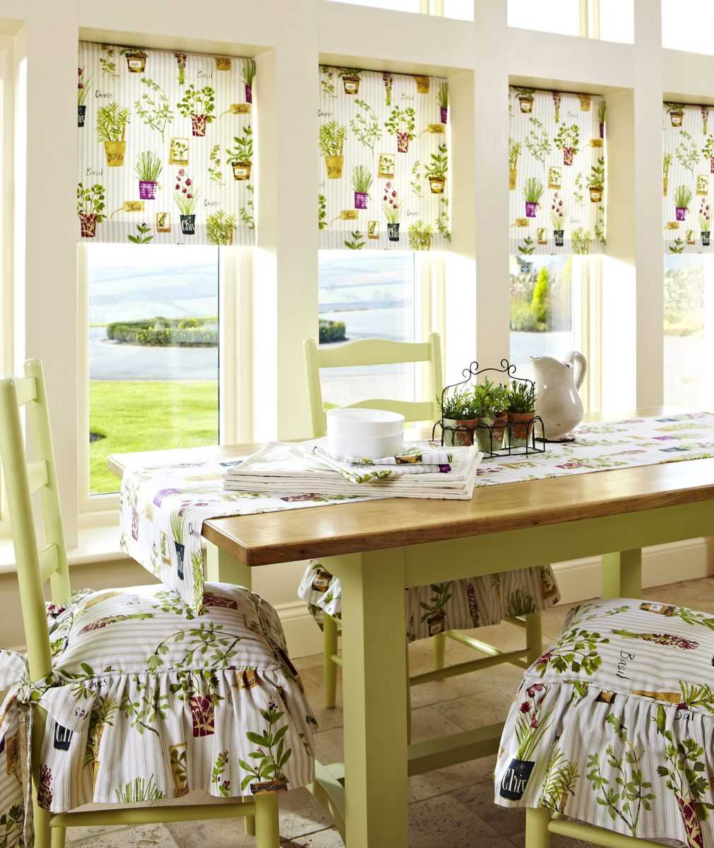 В качестве рисунка используют традиционные полоски, клетку, горошек. Для кухни, столовой или детской комнаты уместны будут изображения растений и животных, овощей и фруктов, грибов и ягод. Гостиную и спальную комнату более изысканно украсят шторы с узорами из цветов и листьев.