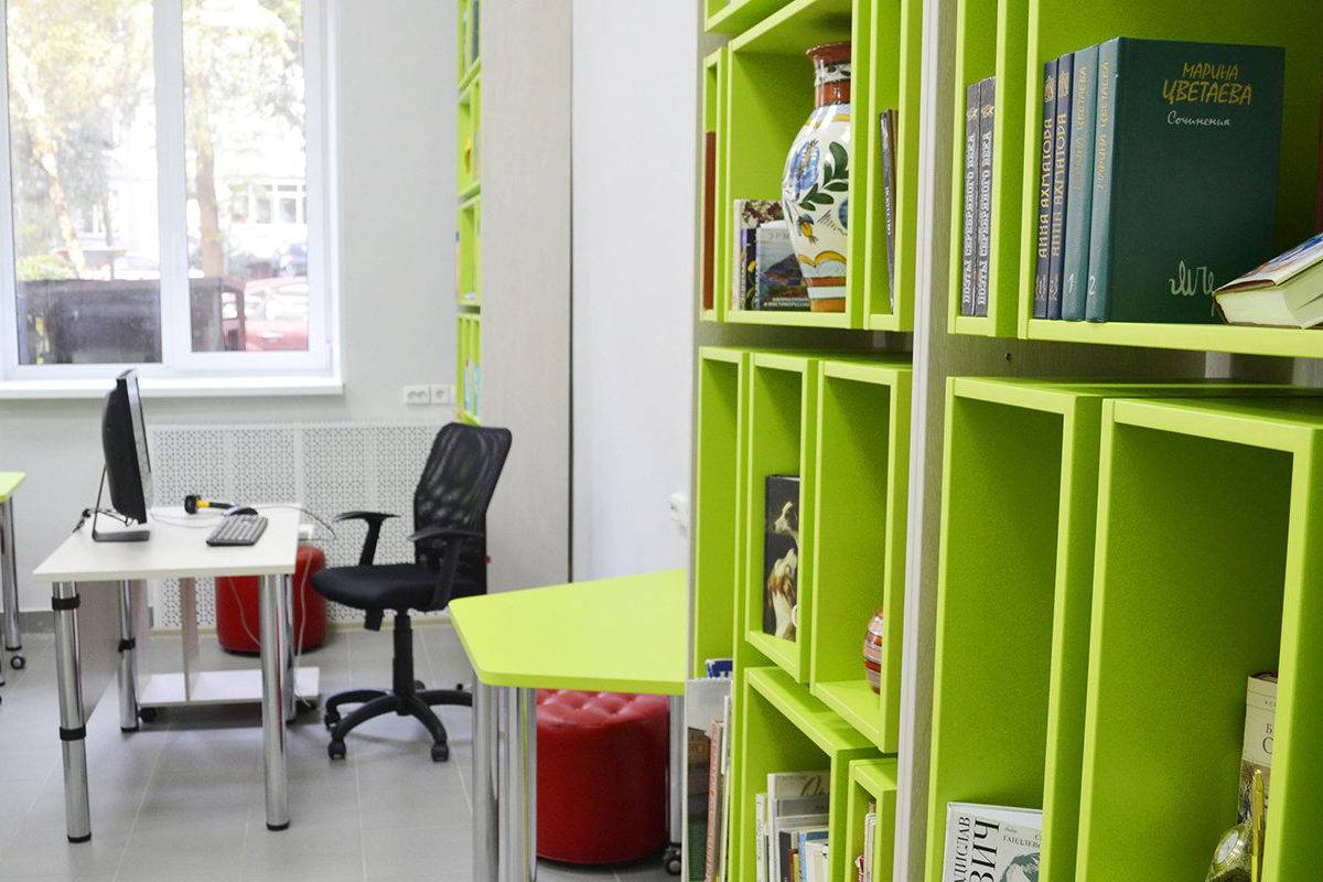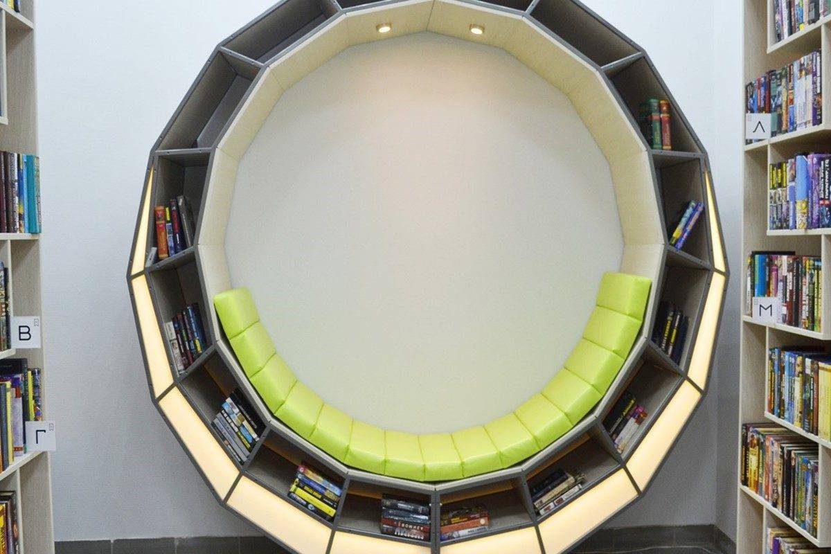 Необычная цветовая гамма выходит за рамки привычного представления о библиотеке