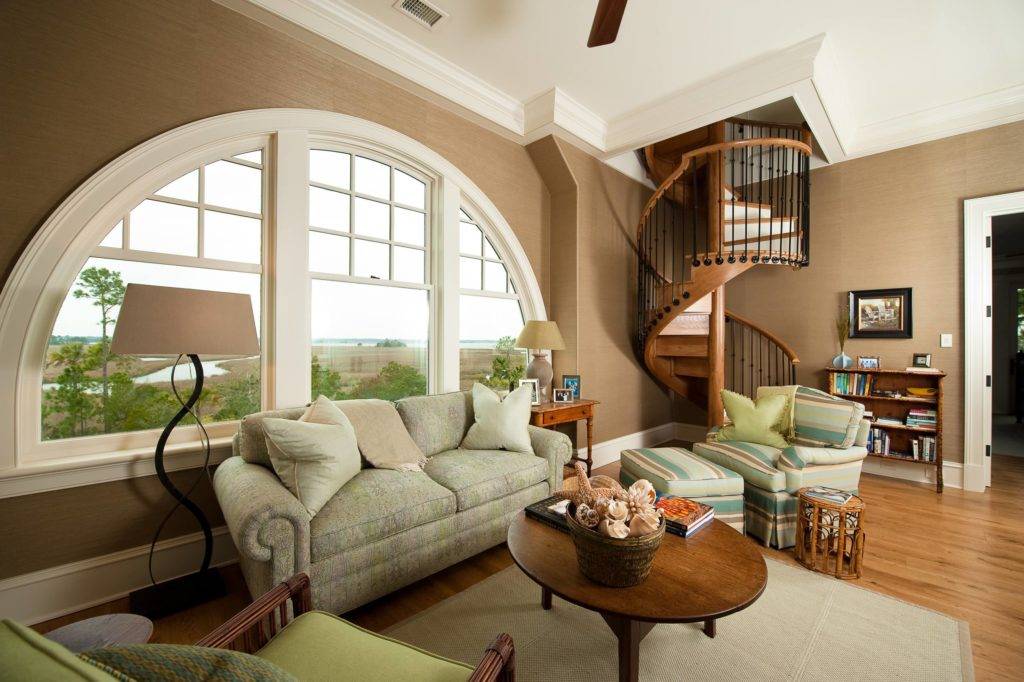 Сейчас гостиная всё чаще выполняет роль фойе, в котором собирается вся семья в перерывах между своими делами. Поэтому, принимая решение о типе конструкции и её размещении, стоит учитывать мнение всех жильцов дома.