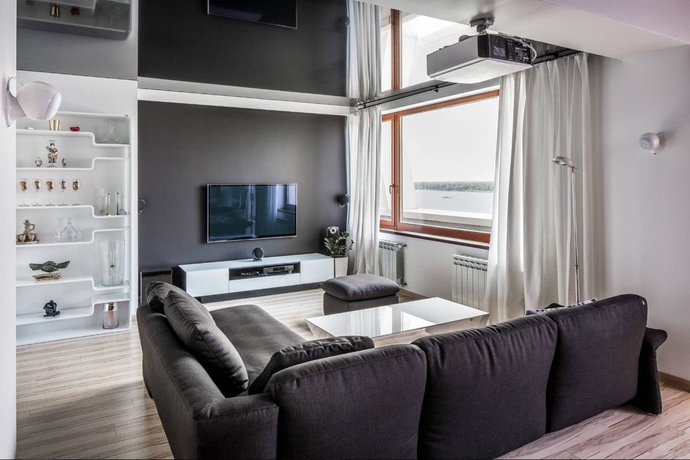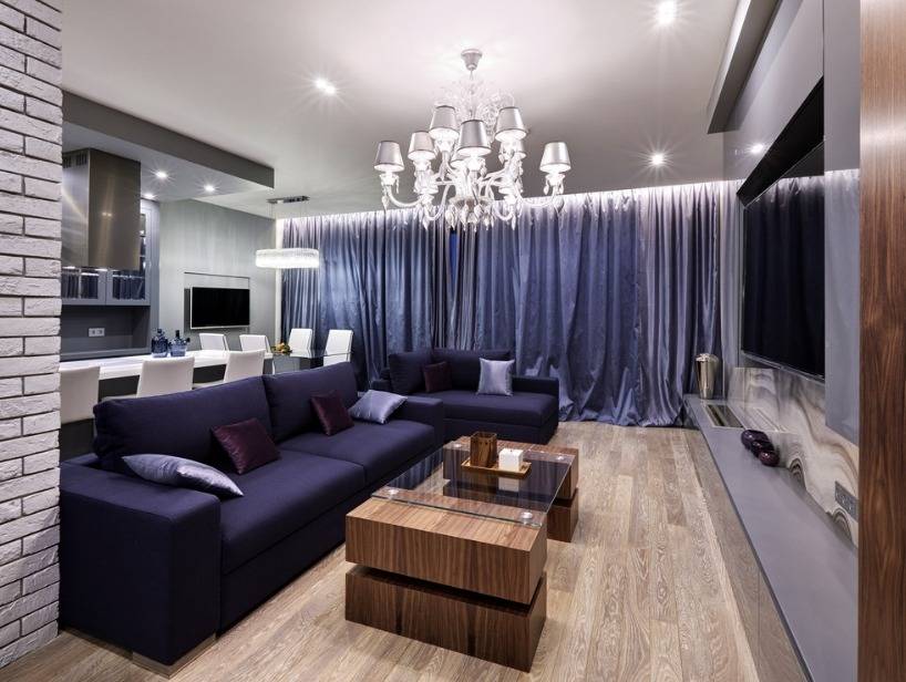 Преимущественное большинство таких квартир имеют большую площадь и высокие потолки, что дает возможность подобрать любой дизайн гостиной.