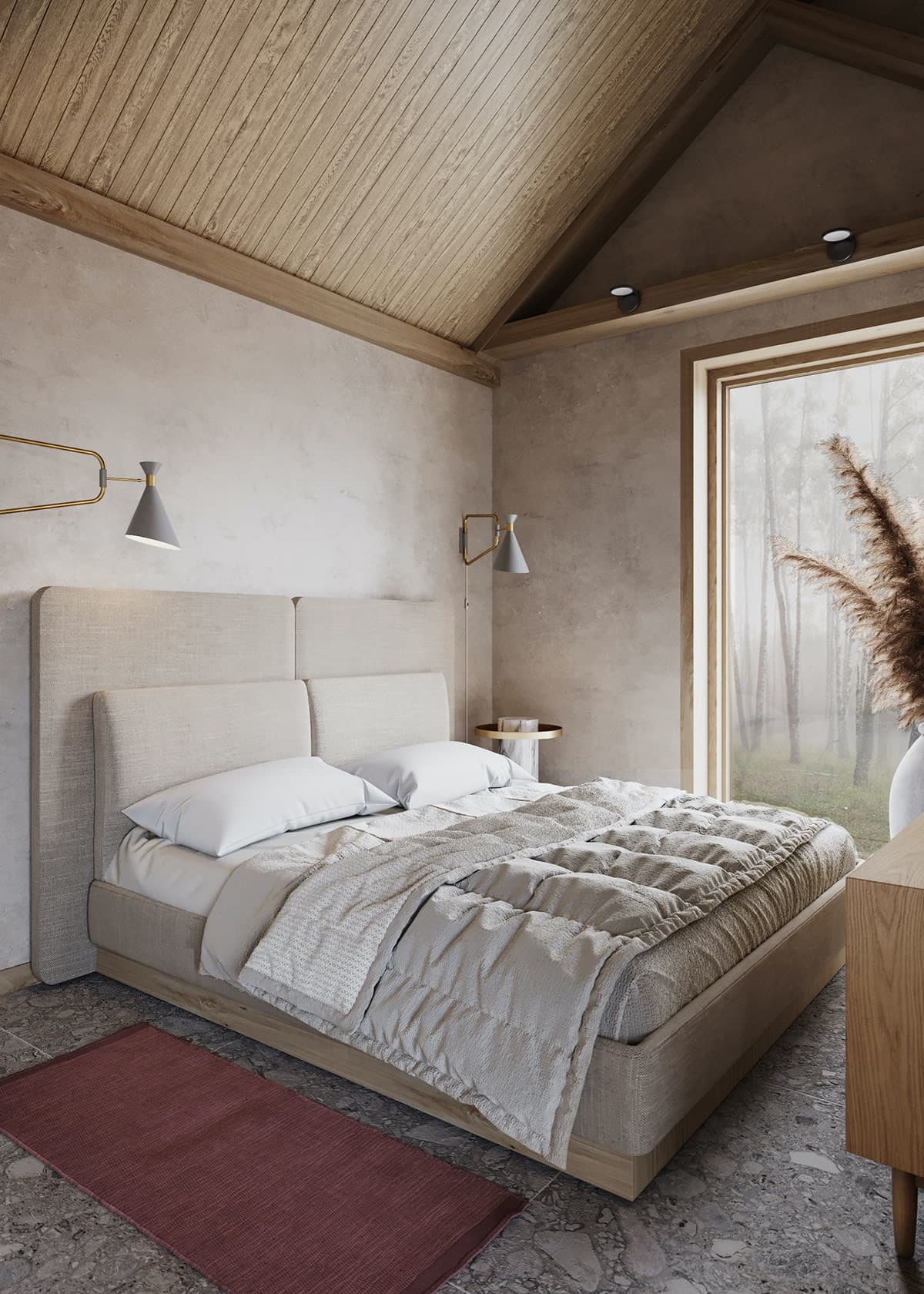 Дизайнеры предупреждают, что если оформить всю спальню в одном тоне цвета беж, то она будет смотреться монотонно и скучно. Выберите пару оттенков бежевого, которые идеально дополнят друг друга, а затем добавьте яркие вещи и предметы интерьера. Даже один цветной аксессуар оживит интерьер комнаты, сделает его выразительным.