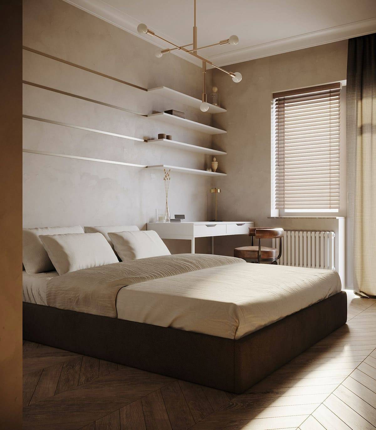 Спальня в бежевом цвете вызывает исключительно положительные эмоции