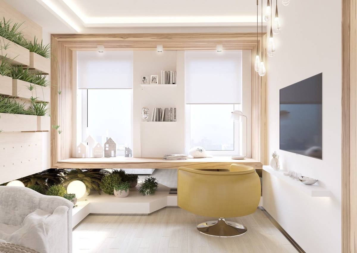 Применение имеющейся площади сводится к использованию светлых тонов в оформлении, отсутствию громоздких декораций и утяжеляющих стилей.