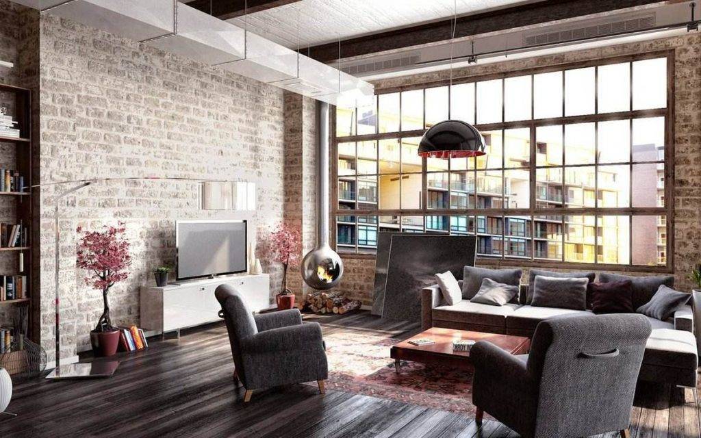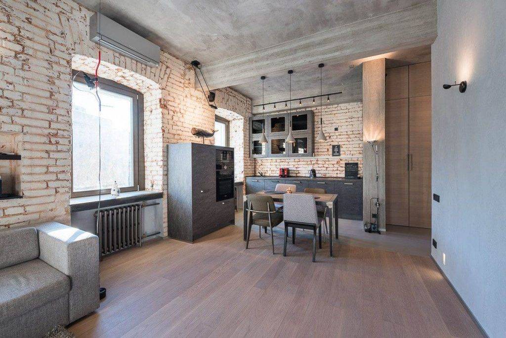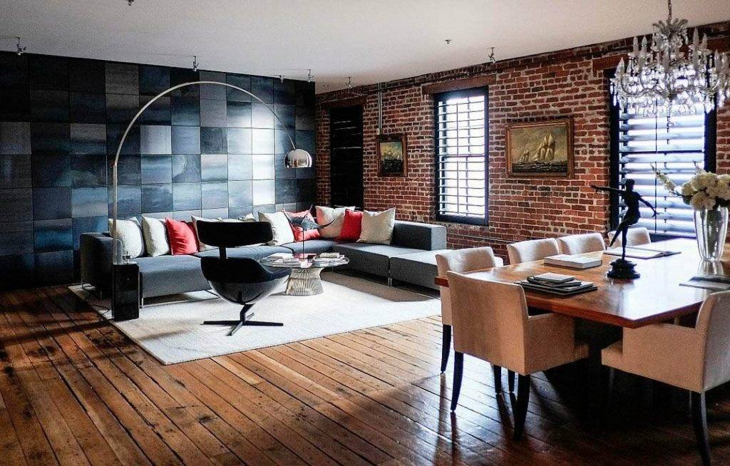 3. В качестве настенного покрытия не принято использовать обои или панели. Для лофта характерна кирпичная кладка, бетонные стены и грубая отделка. Имитацию кирпичной кладки можно выполнить с помощью шпаклевки или декоративного камня.