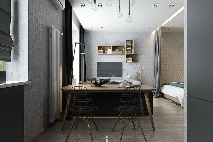 Если у вас студия, то остается лишь создать комфорт и обеспечить функциональность в зоне кухни-гостиной. Рекомендуем использовать натуральные материалы в теплых тонах. Натуральность – тренд последних нескольких лет. Натуральные материалы наполнят помещение «теплом», создавая особую атмосферу комфорта.