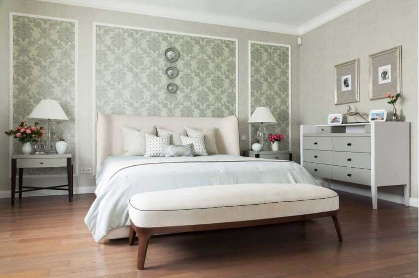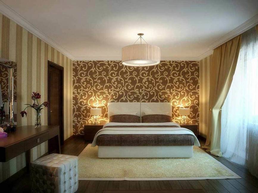 - Какими элементами и предметами интерьера в спальне дополнить комбинацию обоев.