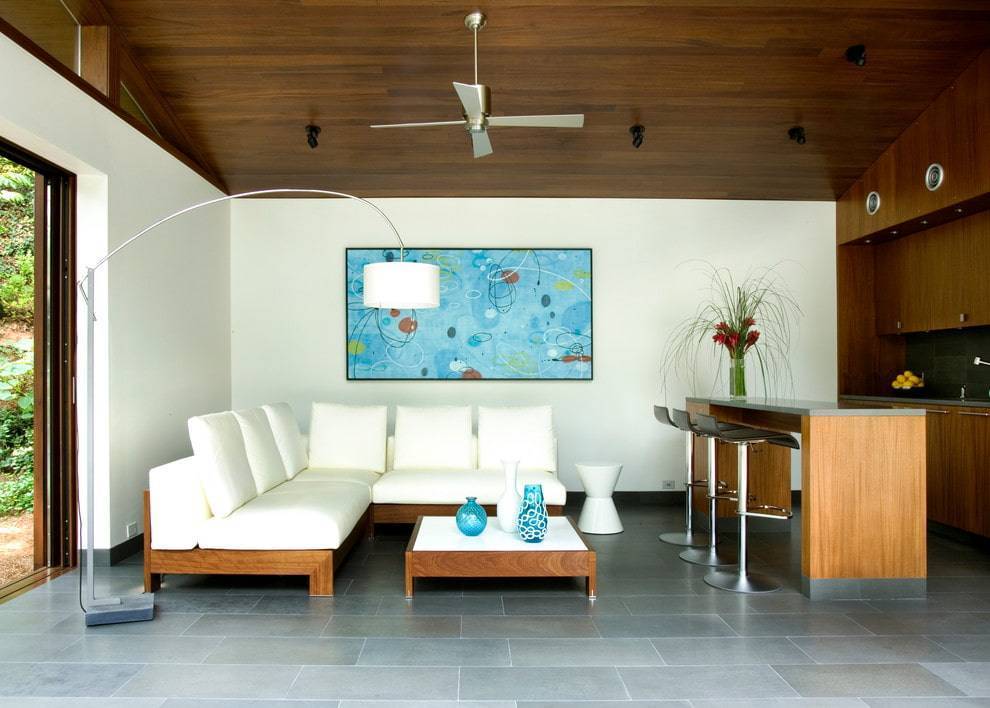 Удачное зонирование можно произвести не только при помощи перегородки или ширмы, но также и путем разделения освещения. Кроме того, разделение функциональных зон при помощи разных напольных и настенных покрытий также дает эффект своеобразного зонирования в помещении