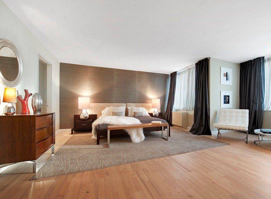 Зонировать большую спальню можно как с помощью мебели ( например, шкафа), так и с помощью элементов декора, которые подойдут вашему интерьеру. Для этого можно использовать: