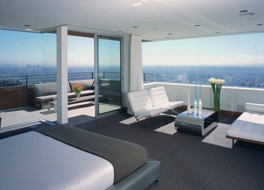 Спальня с элементами стиля хай-тек выглядит не такой холодной