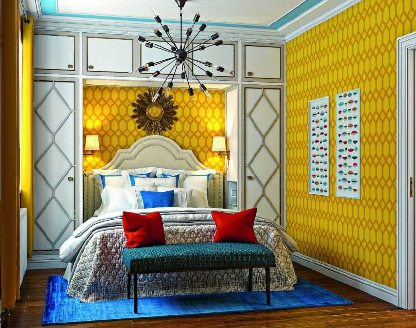 Чтобы не получилось цветовой забитости, профессионалы рекомендуют использовать в помещении для сна не более трех цветов.