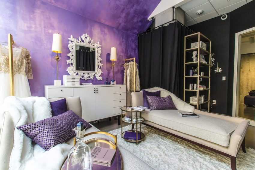 Поскольку контраст может отвлечь все внимание на себя, его используют по минимуму, оставляя за сиреневым оттенком право на превосходство