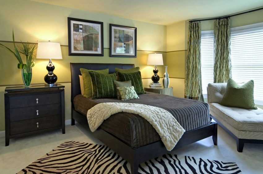 оформление стен в спальне в салатовом цвете