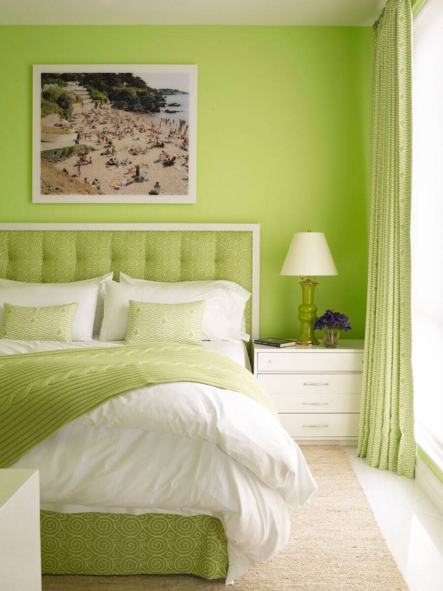 Нюансы использования салатового цвета в дизайне интерьера спальни