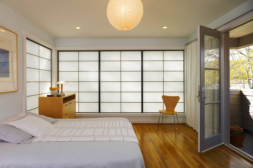 Минимализм предполагает предметы мебели простой геометрической формы без каких-либо декоративных приемов. Этот стиль требует минимум декора, поэтому роль ярких акцентов чаще всего выполняет постельное белье или несколько декоративных предметов (пустые вазы, неброские панно или настольные лампы без абажура и витиеватых линий).