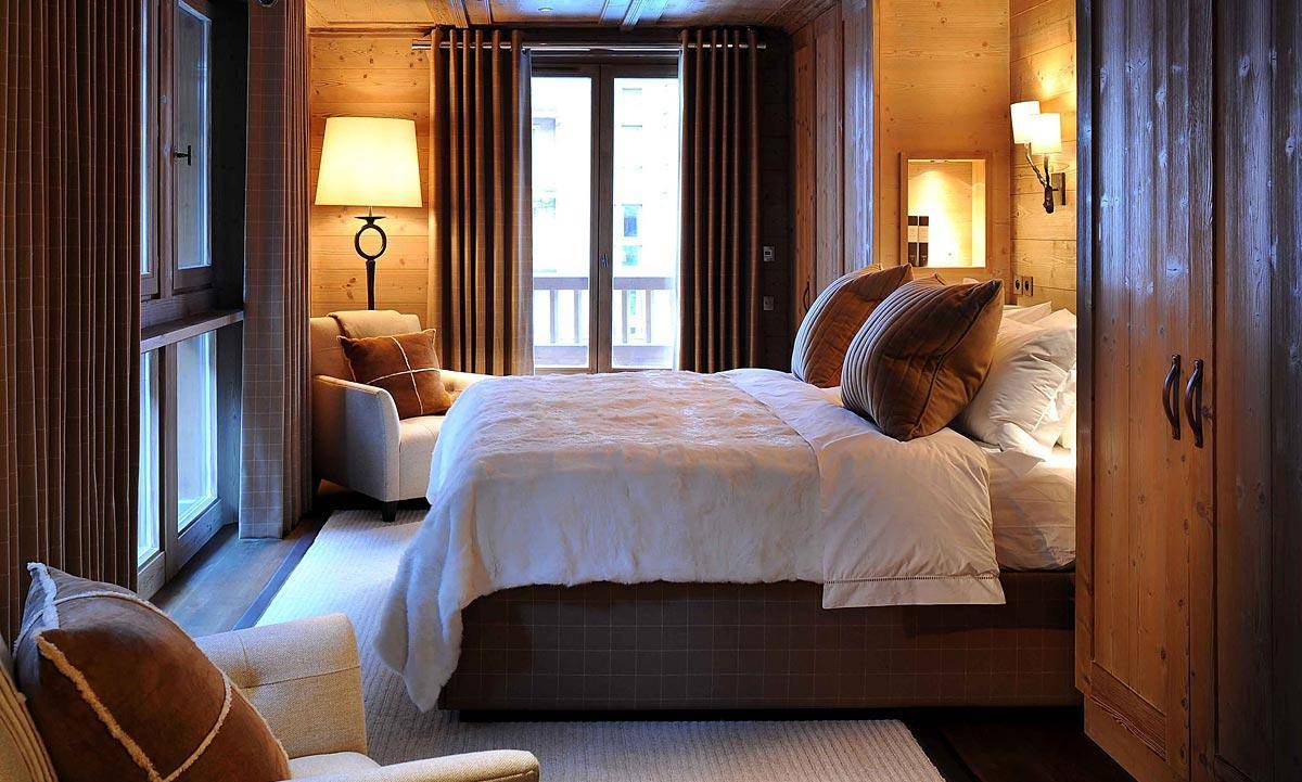 Спальня в стиле шале может иметь больше деревянных элементов. Из дерева выполняются стена за кроватью или потолок. Хорошо будет смотреться и кровать с деревянным изголовьем, весь текстиль в комнате должен быть выполнен из натуральных материалов. Особенность в условиях городской квартиры – это дополнение интерьера в стиле шале современными деталями. Поэтому квартира с интерьером в стиле шале – это постоянный эксперимент и новые идеи.